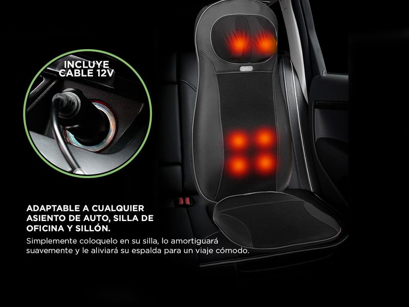 Obtené una experiencia única, agradable y relajante gracias al confort de este asiento masajeador que llega a la zona del cuello, espalda cintura y glúteos.