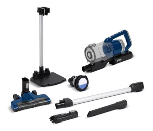 Accesorios: Base de soporte, cepillo piso motorizado con luz led, accesorio boquilla estrecha, accesorio cepillo, cargador, boquilla de tapiceria, manual, boquilla rinconera con cepillo.