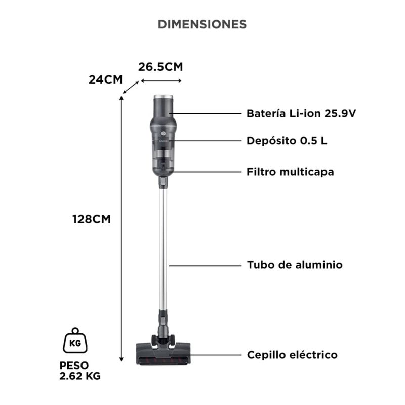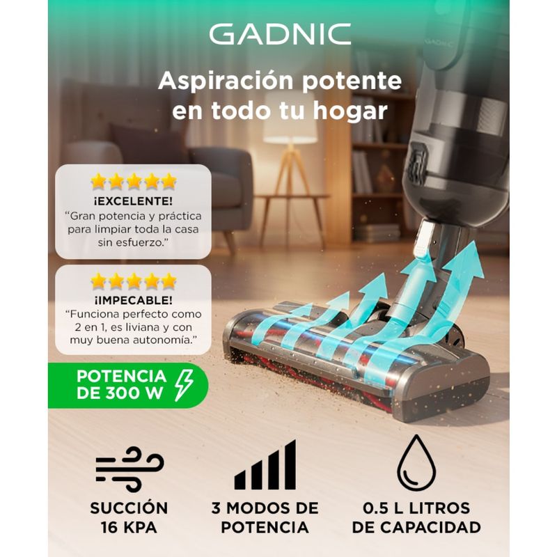Pasá de vertical a aspiradora de mano en segundos. Limpia pisos, autos, muebles y rincones con total comodidad gracias a su peso reducido.