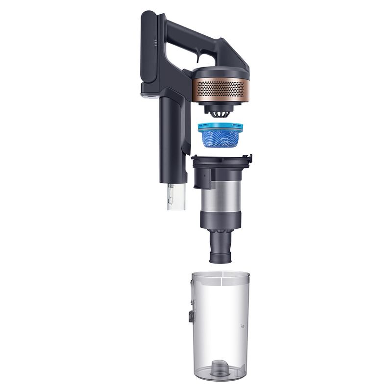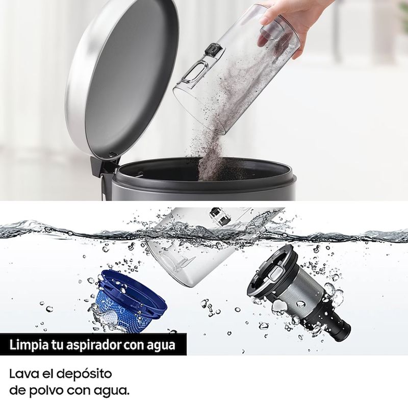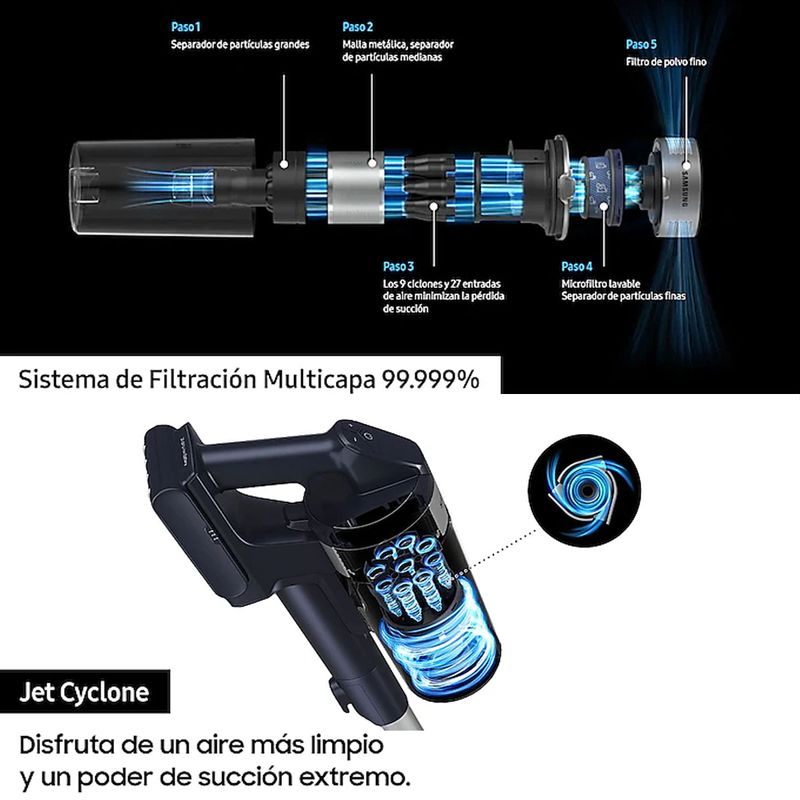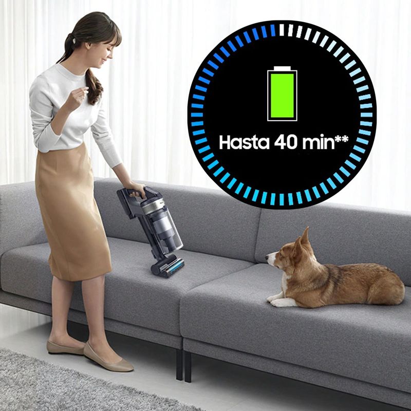 Limpiá tu casa sin esfuerzo con un control y un movimiento sencillos. Su diseño ligero garantiza la máxima facilidad de uso y reduce la tensión en la muñeca. El cuerpo del aparato pesa sólo 1,48 kg, lo que supone un 21% menos peso que los limpiadores convencionales de Samsung. Para que puedas limpiar fácilmente por toda la casa.