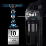 Limpiá mucho más eficazmente con una potencia de succión de hasta 150W. El motor Digital Inverter optimiza el flujo de aire con sus aspas soldadas por ultrasonidos. Así, ofrece una potente potencia de entrada de hasta 550W, mantiene un alto nivel de eficiencia energética y genera hasta 150W de succión. La tecnología Digital Inverter proporciona una durabilidad excepcional respaldada por una garantía de 10 años en el motor.