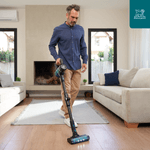 • ¿Es un modelo 2 en 1? Sí, podés usarla como aspiradora vertical para pisos y alfombras, o convertirla fácilmente en una aspiradora de mano para limpiar superficies elevadas o rincones difíciles.