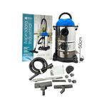 - Incluye accesorios profesionales: manguera flexible larga, tubo telescópico, boquilla para rincones, cepillo para alfombra, ruedas para fácil traslado.