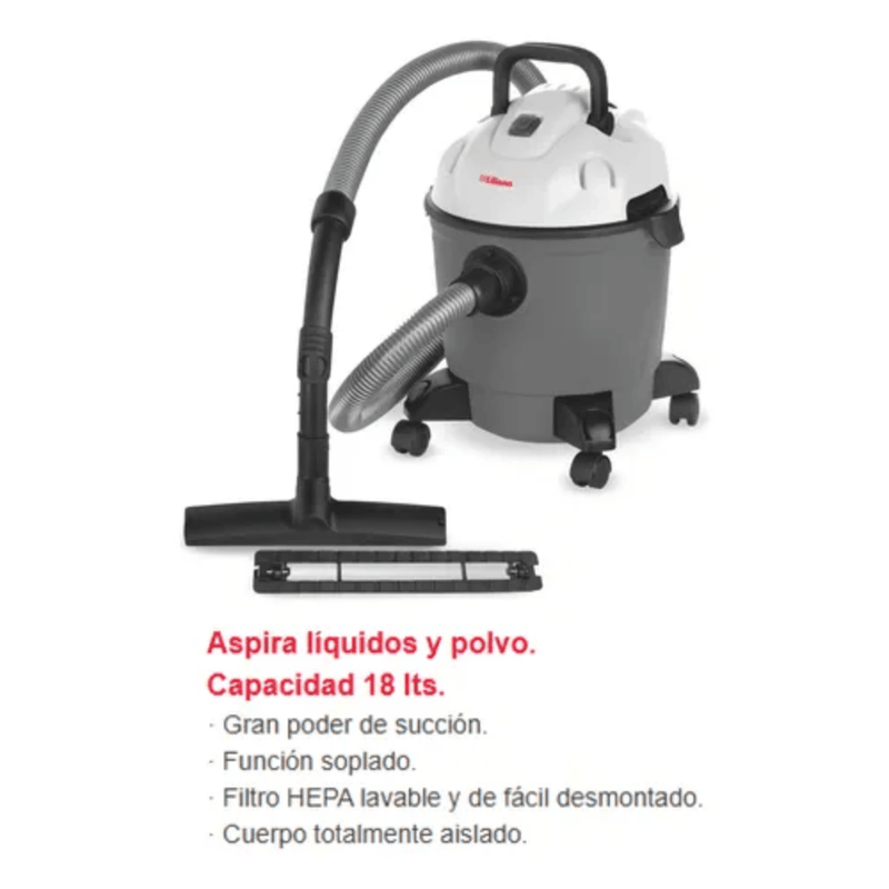 La Liliana Aspilux LA995 es una aspiradora robusta y versátil, ideal para quienes buscan una limpieza profunda y eficiente. Con su capacidad de 18 litros, potencia de 1200W y filtro HEPA lavable, es perfecta para aspirar tanto líquidos como polvo en distintos tipos de superficies. Su función de soplado y accesorios incluidos la convierten en una herramienta completa para el hogar.
