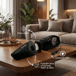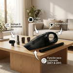 - Su diseño compacto y liviano facilita el manejo y el guardado dentro del auto, mientras que los 5 accesorios incluidos permiten una limpieza más precisa y profunda en zonas estrechas, ranuras y superficies delicadas. Una solución práctica y funcional para quienes valoran la limpieza y el cuidado del vehículo.