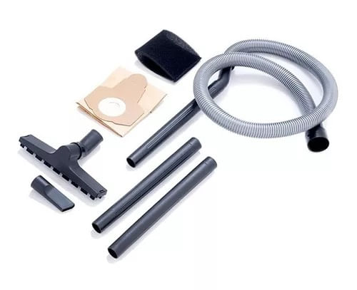 • Accesorios: Cepillo multipropósito, manguera de succión, bolsa de recolección de polvo, filtro de espuma, boquilla para grietas y tubos de extensión.