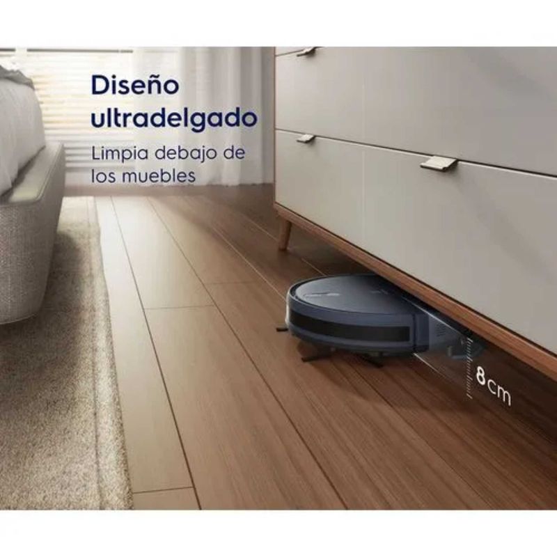La Aspiradora Robot Electrolux 4 en 1 Wi-Fi Experience Azul ERB44 es una solución de limpieza autónoma que barre, aspira y trapea (húmedo o seco), optimizando las tareas del hogar con su conectividad Wi-Fi que permite controlarla y programarla desde la aplicación Electrolux Home App o mediante asistentes de voz como Alexa y Google Assistant. Equipada con tecnología de navegación giroscópica (Gyro) y sensores anticolisión y anticaída, esta aspiradora de diseño ultra slim de 8 cm evita obstáculos y escaleras, navegando eficientemente bajo muebles para una cobertura completa. Su sistema de doble filtración con Filtro HEPA captura micropartículas y alérgenos, devolviendo un aire más puro al ambiente, y su batería de litio ofrece hasta 2 horas de autonomía, regresando automáticamente a su base de carga inteligente cuando es necesario.