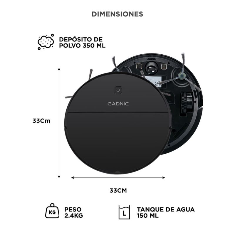 Con su diseño elegante y compacto, la Aspiradora Robot Gadnic es la combinación perfecta de estilo y funcionalidad. Equipada con tecnología de vanguardia y una serie de características avanzadas, esta aspiradora robot se adapta a tus necesidades de limpieza con facilidad y eficiencia.