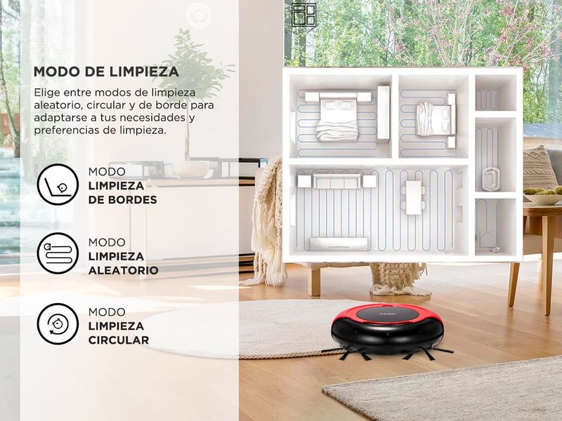 Con su capacidad para trabajar en diferentes tipos de suelos, como baldosas, mármol, suelos de madera y moquetas, esta aspiradora robot se convierte en el aliado perfecto para mantener tu hogar limpio y acogedor.