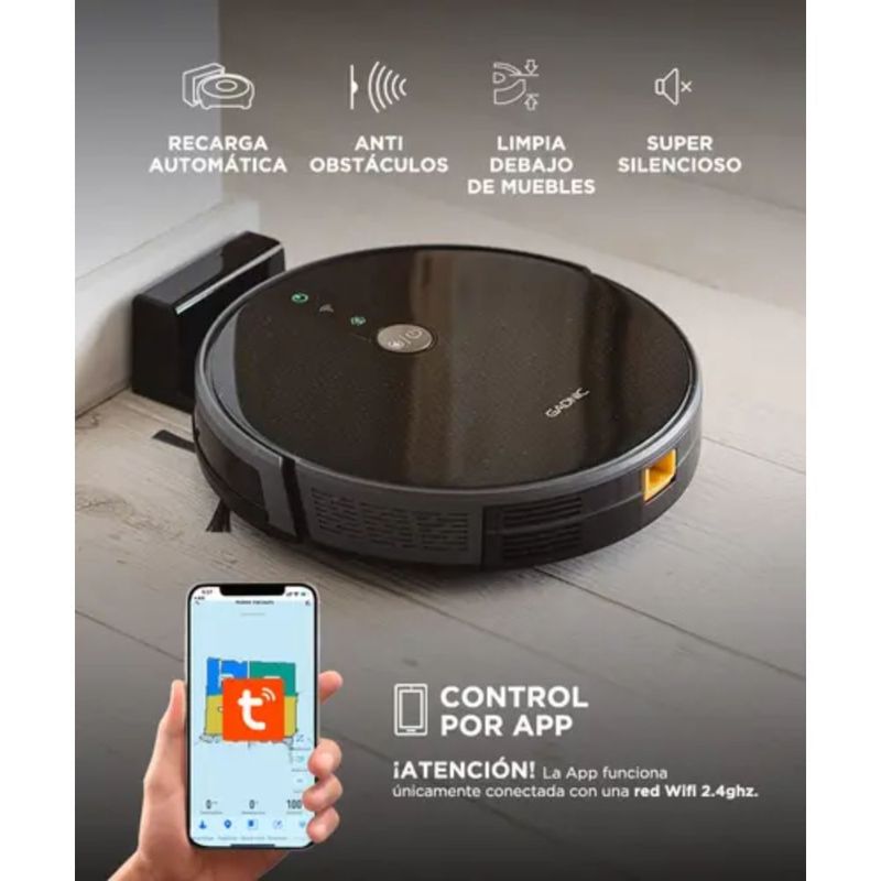 Además cuenta con la función de Autocarga que la guía a la base de carga de forma automática para siempre estar al 100% y dejar tu casa impecable. También podes accionarla de forma remota bajándote la App y tener tu casa siempre limpia aún antes de llegar con su función de Cronograma.