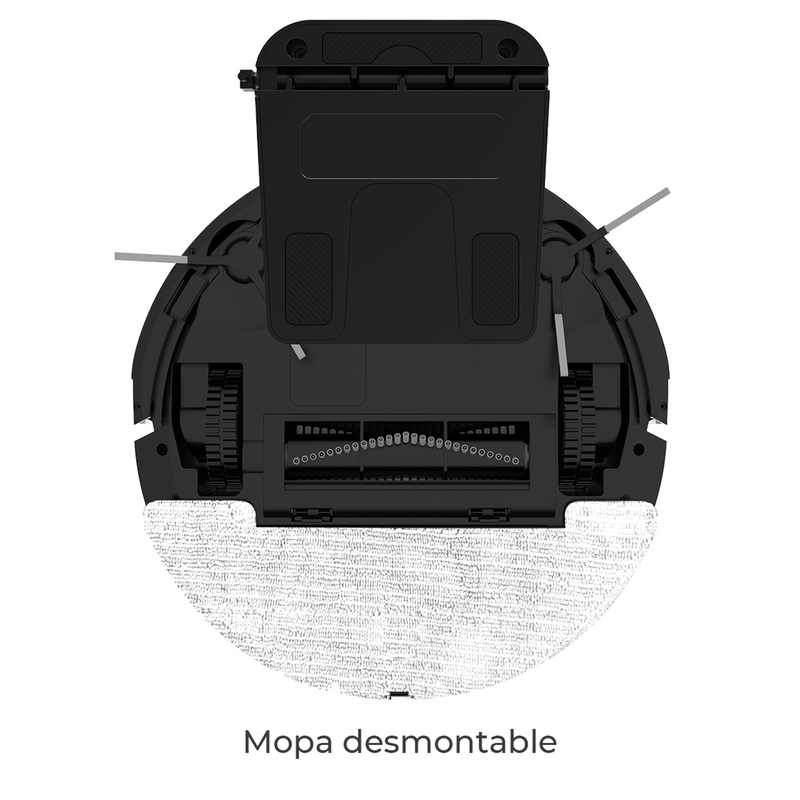 - Modo trapeado con mopa desmontable y lavado automático, ideal para mantener tus pisos relucientes.