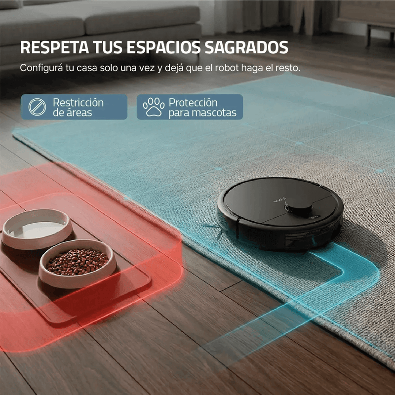 Navegación con Mapeo (Orbital): Reconoce tu hogar, traza una ruta ordenada y tú ves el mapa en vivo desde tu celular. Sabe exactamente qué limpió y qué le falta.