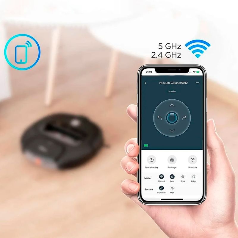 - Retorno Automático a Base: Cuando la batería de litio (2600 mAh) está baja, el robot vuelve por sí solo a la base de carga.
