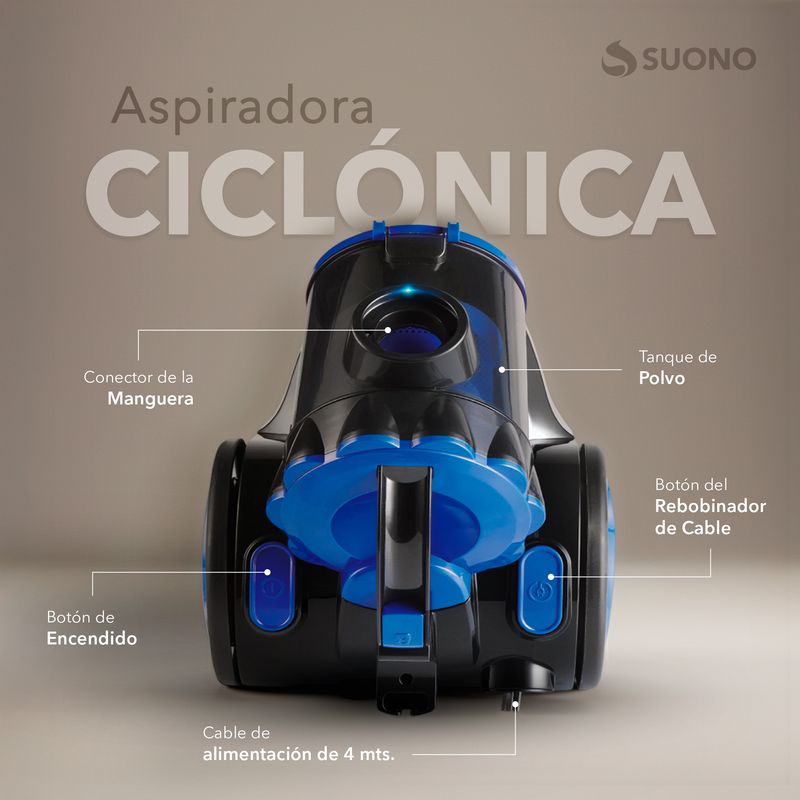 Aspiradora Trineo Ciclónica Suono sin Bolsa 880W – Potencia y practicidad para una limpieza impecable todos los días.