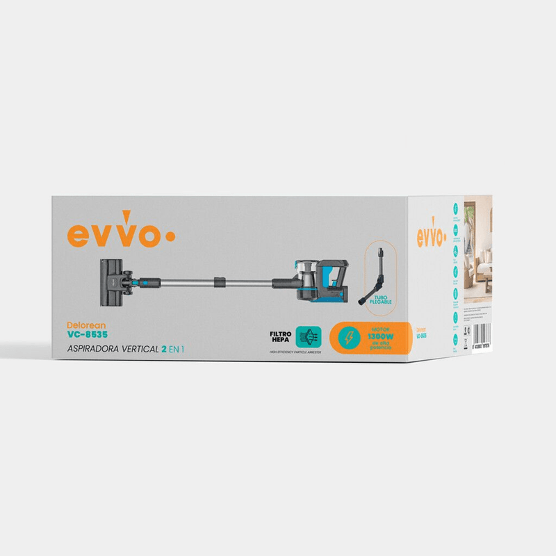 La EVVO Delorean VC-8535 es la aspiradora ideal para quienes buscan máximo rendimiento y comodidad. Equipada con un motor de 1300W de alta potencia y una succión de 25Kpa, elimina la suciedad más difícil en cualquier tipo de superficie. Su diseño 2 en 1 permite usarla como aspiradora vertical o de mano, brindando versatilidad para limpiar pisos, muebles, tapizados y rincones de difícil acceso. Además, su filtro HEPA garantiza una limpieza profunda al capturar partículas de polvo y alérgenos, asegurando un ambiente más saludable.