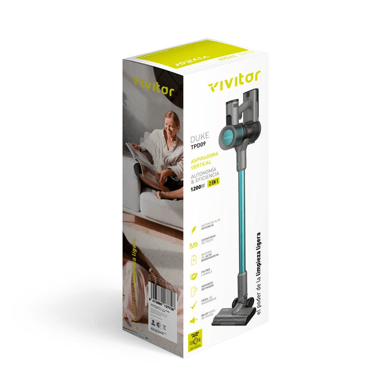 La DUKE TPD09 es la aspiradora vertical ideal para quienes buscan potencia y comodidad en un solo dispositivo. Con su motor de 1200W y una potencia de succión de 22Kpa, garantiza una limpieza profunda en todo tipo de superficies, eliminando hasta las partículas más pequeñas de polvo y suciedad. Su diseño 2 en 1 permite utilizarla como aspiradora vertical para pisos o en modo de mano para muebles, tapicerías y rincones de difícil acceso. Además, su filtro lavable facilita el mantenimiento y prolonga su vida útil.