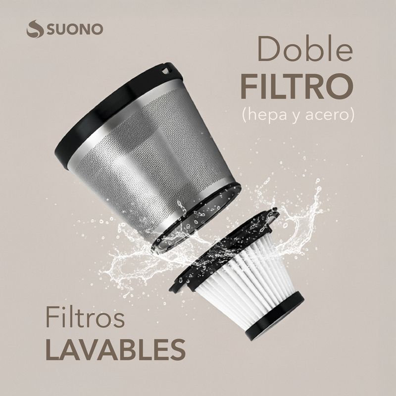 -Doble filtro (HEPA + acero inoxidable): Retiene hasta las partículas más finas, mejorando la calidad del aire.