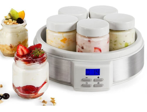 Yogures naturales de una forma fácil y sencilla Viene con 7 jarros de vidrio de 200 ml cada uno Pantalla LCD y timer digital con apagado automático Timer digital Apagado Automático Recetario exclusivo