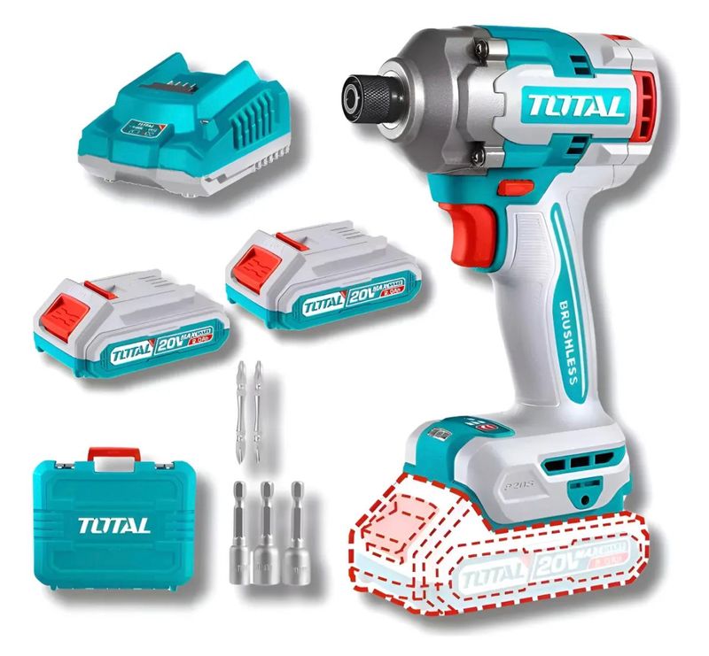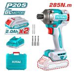 Atornillador de Impacto 20V BL 1/4 285Nm INDUSTRIAL TOTAL TIRLI2023-4 (MALETIN, CARGADOR, Y 2 BATERIAS 2Ah)