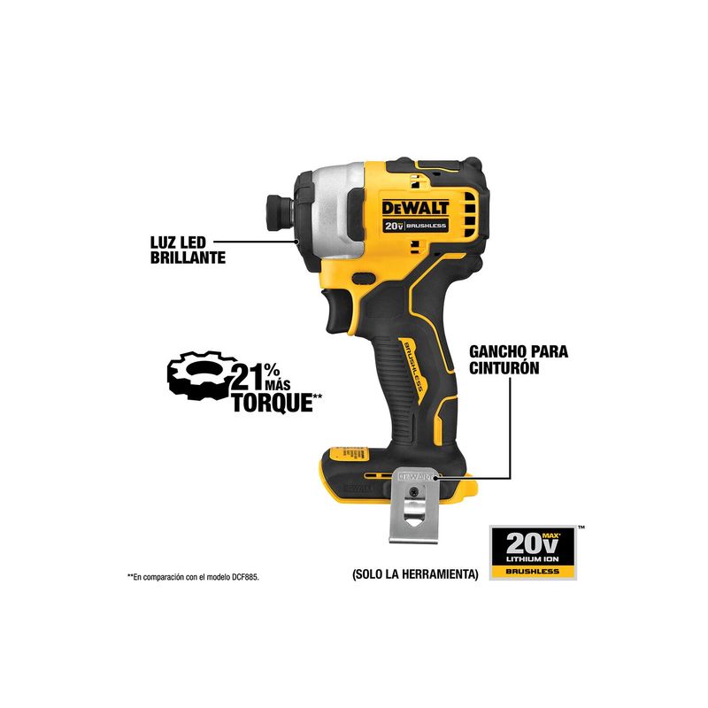 Atornillador De Impacto Dcf809b Dewalt 20V Compacto