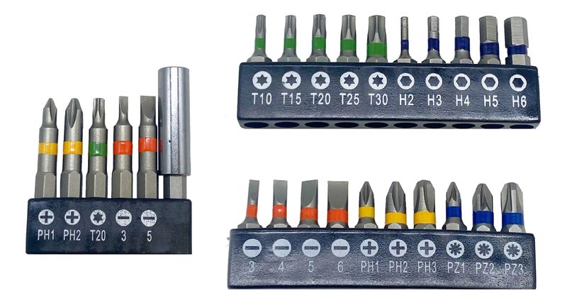 - 3 Pozidriv de 25 mm: PZ1-2-3