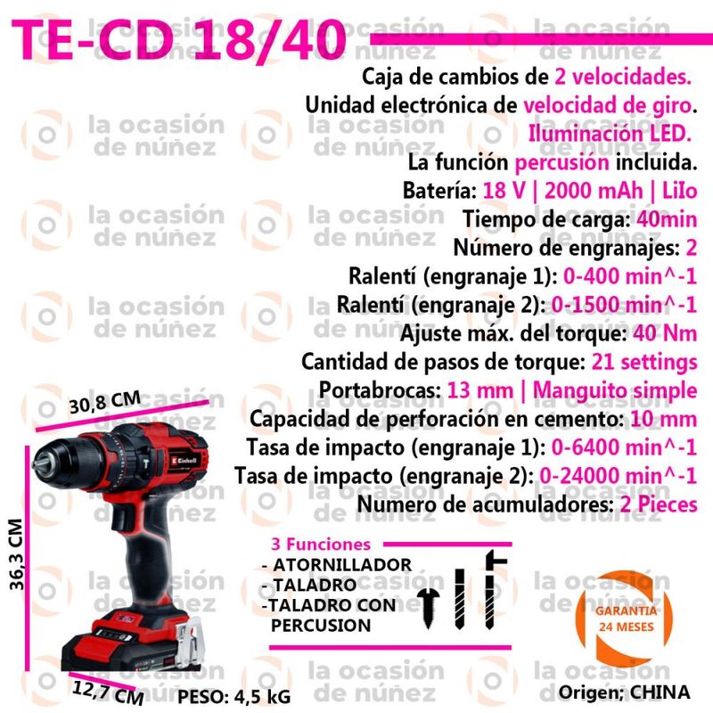 **Incluye:** 2 baterías PXC de 2,0 Ah - 1 cargador rápido - Maletín - Accesorios con 64 piezas ( 1 acc. p. avellanado, 1 portabits magn., 1 cúter, 10 puntas llaves de vaso (4/5/6/7/8/9/10/11/12/13 mm), 5 brocas hormigón (4/5/6/8/10 mm), 10 puntas 50 mm, 20 puntas 25 mm, 5 brocas p. madera (4/5/6/8/10 mm), 10 puntas broca HSS (1,5/2/2,5/3/3,5/4/4,5/5/6/6,5 mm))