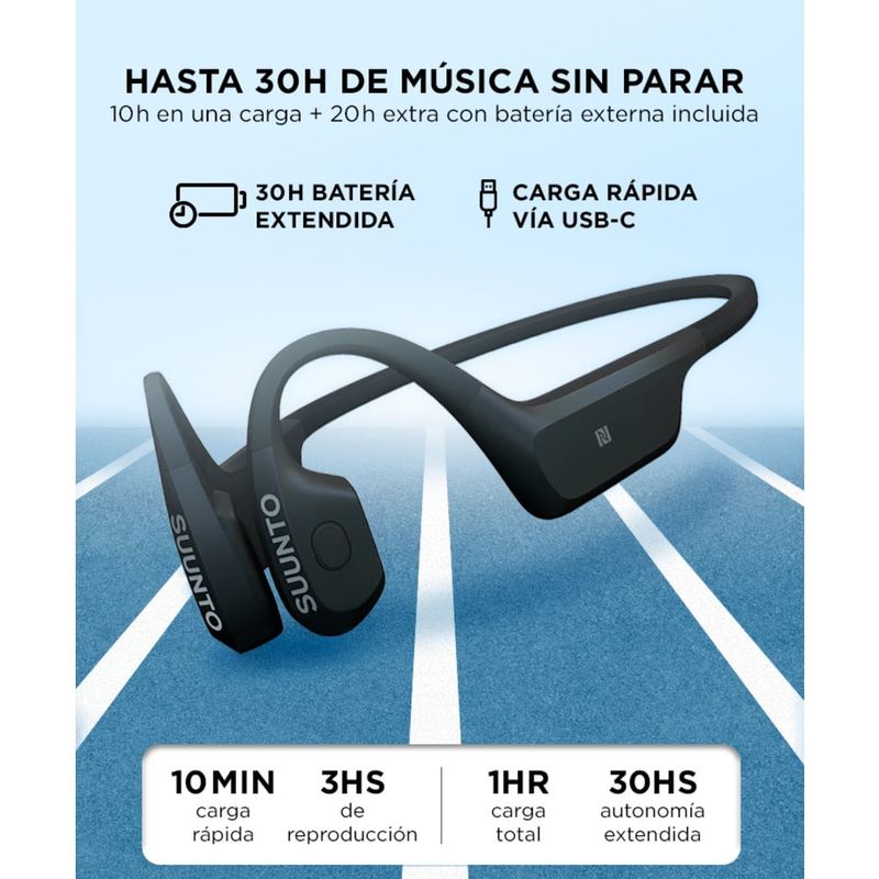 Obtené hasta 10 horas de audio con una carga completa y sumá 20 horas extra con la batería externa incluida. Además, su carga rápida te da 3 horas de música con solo 10 minutos de carga.