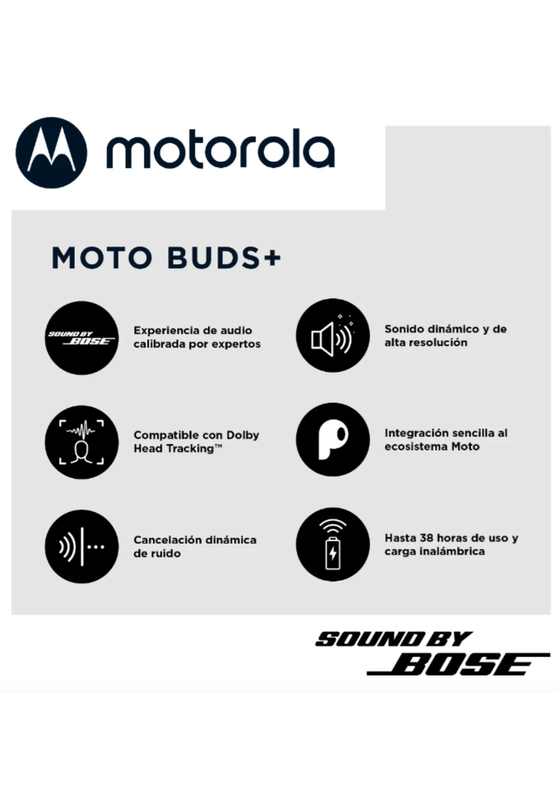 Equipados con micrófono, los Moto Buds+ permiten realizar y recibir llamadas con claridad, facilitando la comunicación en cualquier momento. Su diseño elegante y moderno se adapta a cualquier estilo, convirtiéndolos en un accesorio imprescindible para quienes valoran la funcionalidad y la estética.