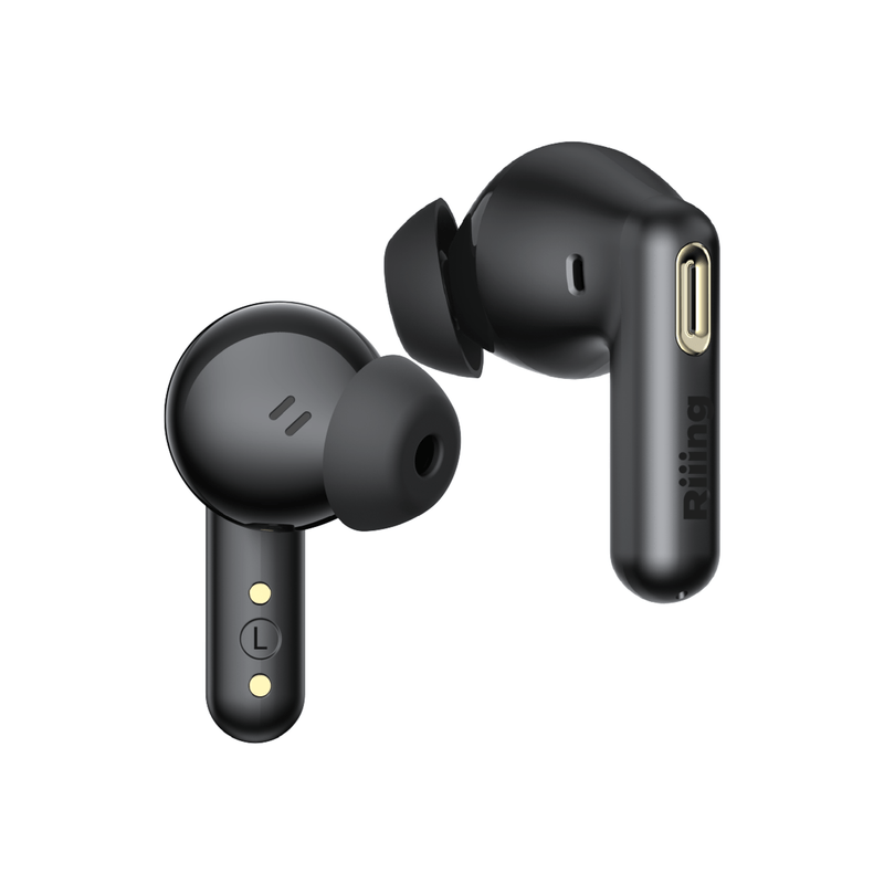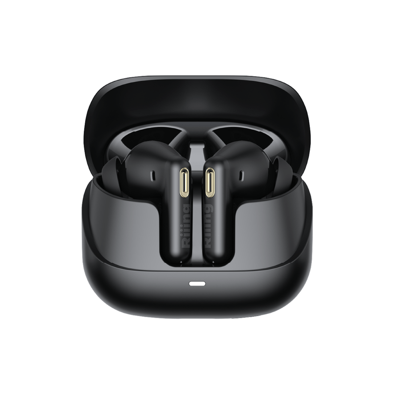 Los Riiing Lyra Buds + redefinen la experiencia auditiva inalámbrica con un diseño moderno, ergonómico y una tecnología de sonido inteligente que se adapta a tu ritmo diario. Su estética minimalista en negro brillante transmite elegancia y sofisticación, mientras que su estructura compacta asegura comodidad y un ajuste seguro durante horas de uso continuo.