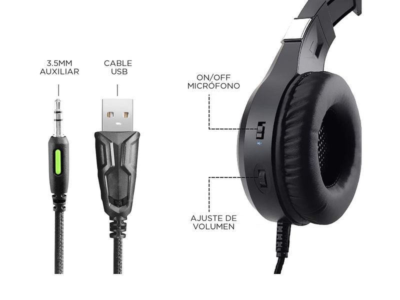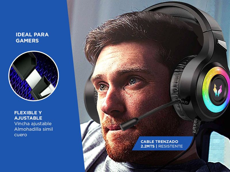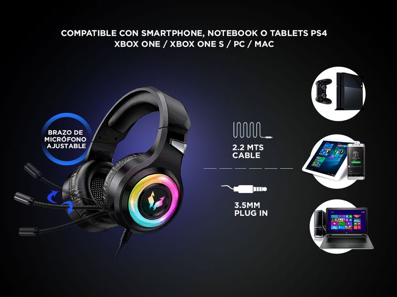 Descubrí los excelentes Auriculares A9000 PLAY RGB para pc, consolas y celulares diseñados con los gamers mas exigentes que tienen en mente y desean más que una simple experiencia de juego. Estos audífonos con sonido estéreo 360°, micrófono con cancelación de ruido y luz LED RGB, son tus mejores aliados para esas largas horas de intenso juego y batallas épicas. Además incluyen adaptador Audio Mini Plug 3,5mm A Micrófono Y Auricular para pc de escritorio y alargador usb para que siempre tengas encendidas las luces del auricular.