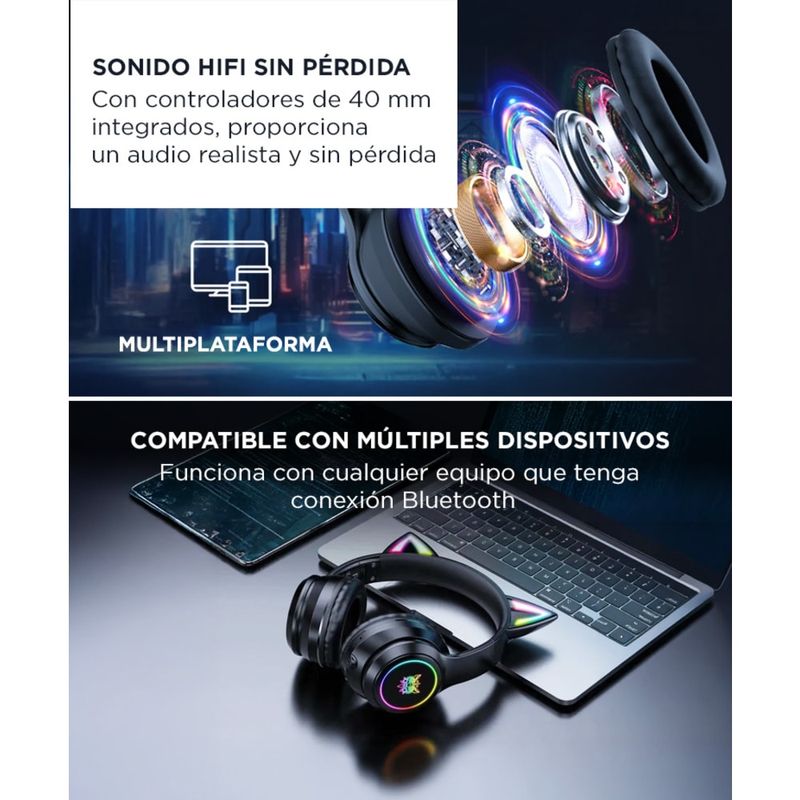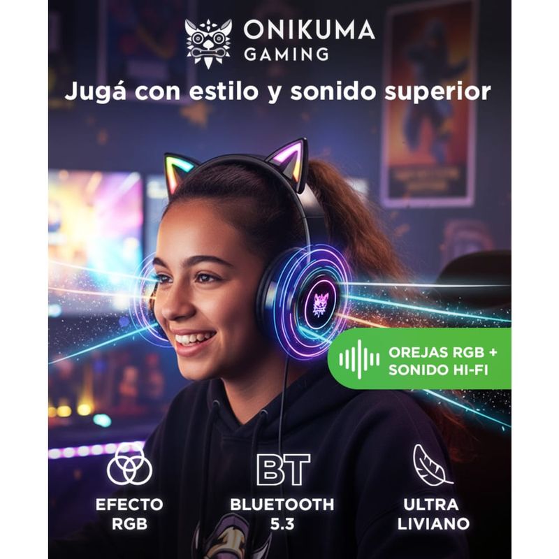 Iluminate con estilo. Las orejas de gato RGB y el logo iluminado te hacen destacar en cada sesión de juego o streaming.