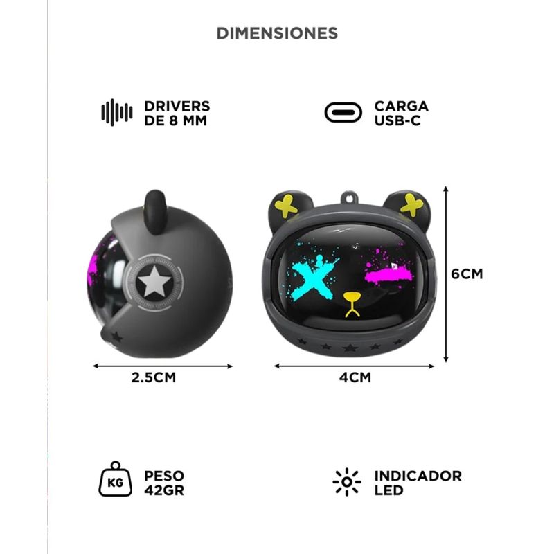 Con su diseño inspirado en un “oso espacial” y un estuche con tapa giratoria estilo Cyberbear, combinan estética futurista con funcionalidad. Suma el ajuste ergonómico tipo in-ear y lográs un uso cómodo por horas.