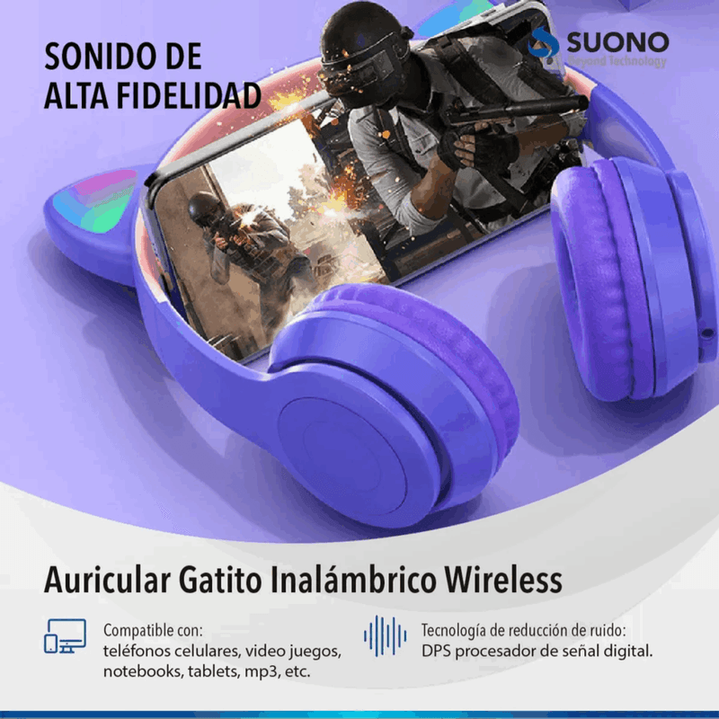 El Suono CAT A6-SUO082 es un auricular de vincha con diseño moderno y funcionalidad completa, ideal para quienes buscan disfrutar de su música, series o llamadas sin cables y con total comodidad. Su diseño tipo over-ear, con almohadillas acolchadas, brinda un ajuste suave y envolvente, aislando el ruido exterior de forma pasiva y permitiendo un uso prolongado sin molestias.