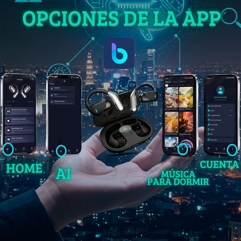 disfruta de horas de música y llamadas con la comodidad del diseño abierto (open ear) y la última tecnología bluetooth 6.1. su control táctil intuitivo te da el mando total, mientras que su integración con bitdynamic te ofrece traducción en tiempo real y asistente de reuniónes con ia.
