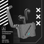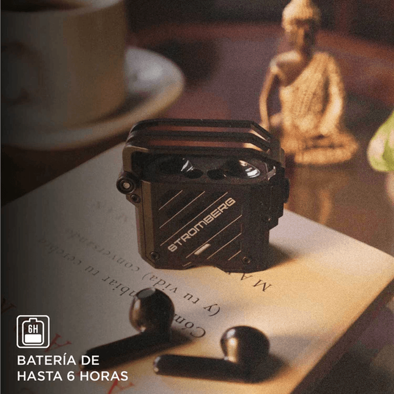 • Funda cargadora de 300mAh con hasta 10 cargas completas de los audífonos