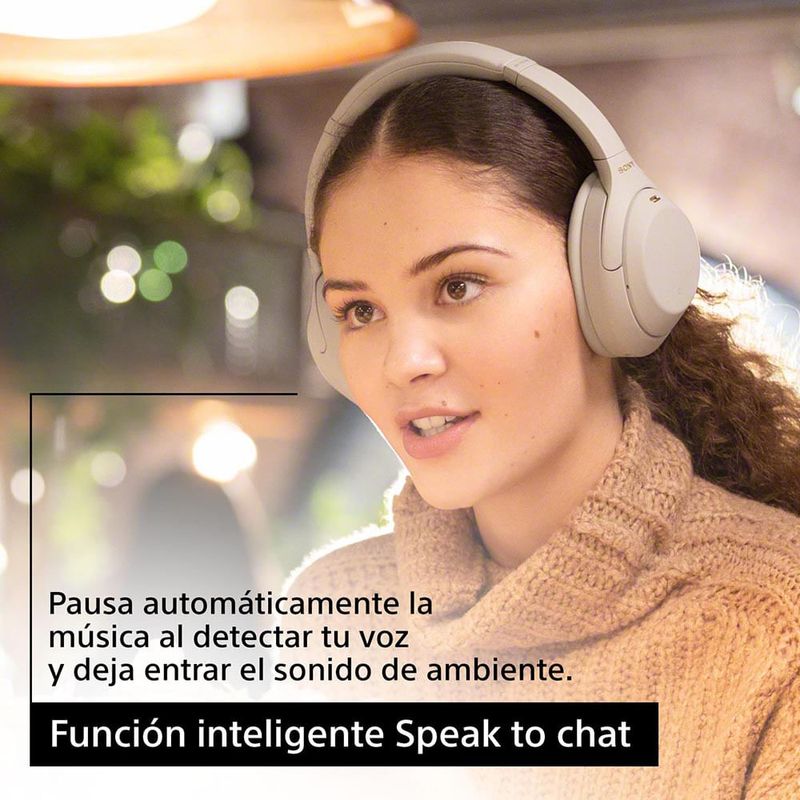 Noise Cancelling líder del sector2Ya estés en un vuelo largo o relajándote en una cafetería, los WH-1000XM4 ofrecen el mejor rendimiento de noise cancelling de la historia de Sony, que anula aún más frecuencias medias y altas. La tecnología noise cancellingLa tecnología de sensor de ruido dual, con dos micrófonos en cada auricular, captura el ruido ambiental y transmite los datos al procesador de Noise Cancelling HD QN1. Mediante un nuevo algoritmo, este aplica un procesamiento de cancelación de ruido en tiempo real a diversos parámetros acústicos y se combina con un nuevo SoC (sistema en un chip) de audio Bluetooth® para detectar y adaptarse a las señales de música y ruido, así como a la acústica entre la unidad de diafragma y el oído, más de 700 veces por segundo. Optimización de noise cancellingLos WH-1000XM4 incorporan dos tecnologías para maximizar el rendimiento de cancelación de ruido: la optimización de la presión atmosférica, que ofrece un sonido óptimo a altitudes elevadas3, y el optimizador personal de noise cancelling, que analiza las características acústicas únicas que determina el tamaño de la cabeza, las gafas y el pelo para optimizar el sonido. Control de sonido ambientalAjusta el sonido ambiente con la aplicación Sony | Headphones Connect para cancelar el ruido sin aislarte de sonidos importantes, como avisos de megafonía mientras te desplazas. Libertad sin cables, sonido premiumLDAC transmite el triple de datos (tasa de transferencia máxima de 990 kbps) que el BLUETOOTH® convencional, lo que te permite disfrutar de contenido de High-Resolution Audio con una calidad excepcional, casi como el audio de una conexión mediante cable. Un sonido en el que puedes confiarEl amplificador del procesador de Noise Cancelling HD QN1 logra la mejor relación señal-ruido para la reducción de distorsión y ofrece un sonido excepcional en dispositivos portátiles. Los controladores de 40 mm, con diafragmas de polímero de cristal líquido (LCP), hacen que sean ideales para ritmos graves y permiten reproducir un amplio rango de frecuencias (hasta 40 kHz). Restauración en tiempo real de tus archivos comprimidos Con la tecnología Edge-AI (inteligencia artificial) codesarrollada con Sony Music Entertainment, DSEE Extreme™ (Digital Sound Enhancement Engine), mejora los archivos digitales de música comprimida en tiempo real, reconoce de forma dinámica instrumentos, géneros y elementos individuales de cada canción, como voces o interludios, restaura frecuencias perdidas en la compresión, y crea una experiencia más completa.4Activa DSEE Extreme™ desde la aplicación Sony Más comodidad cada día: habla para conversarCuando empiezas a hablar con alguien, el modo "hablar para conversar" pausa la música para que puedas oír el sonido ambiente y conversar; resulta muy útil si quieres dejarte los auriculares puestos o tienes las manos ocupadas. Mediante una tecnología de reconocimiento preciso de la voz, usa cinco micrófonos integrados y un procesamiento avanzado de la señal de audio para reconocer y reaccionar a tu voz. Cuando termine la conversación, la música volverá a sonar.5Por defecto, este modo reanuda la reproducción 30 segundos después de que acabe tu conversación, pero puedes ajustar el intervalo en la aplicación Sony La función de control de sonido adaptativo se ajusta automáticamente a tu entorno y lo que estés haciendoLa función inteligente de control de sonido adaptativo aprende a reconocer las localizaciones que más visitas, como tu lugar de trabajo o tu cafetería favorita para adaptar el sonido y crear una experiencia de escucha ideal. Además, es capaz de detectar automáticamente qué estás haciendo (caminar, esperar, viajar...) y adaptarse al sonido ambiente en función del entorno. Auriculares que reaccionan a tus movimientosLos auriculares cuentan con un sensor de proximidad que detecta cuándo te los pones o te los quitas para controlar la reproducción y así ahorrar batería. Al quitarte los auriculares, la música se detiene automáticamente; vuelve a ponértelos y se reanudará. Quick Attention¿Necesitas escuchar las voces o sonidos a tu alrededor? Coloca la mano sobre el auricular para bajar el volumen de la música y dejar que entre el sonido ambiente. Llévalos todo el día con total comodidadLos WH-1000XM4 combinan sofisticación y comodidad: sus suaves almohadillas de espuma de uretano alivian la presión mediante una distribución uniforme y aumentan la superficie de contacto para crear un ajuste estable. Gracias a su diseño ligero, apenas notarás que los llevas puestos. Energía todo el día y carga rápidaGracias a las 30 horas de duración de la batería, tendrás suficiente energía incluso para viajar. Además, una carga rápida de 10 minutos mediante el adaptador de CA opcional te da hasta 5 horas más.6 Saca el máximo partido al asistente de vozGestiona tu día con solo hablar con el asistente7Los WH-1000XM4 ofrecen el Asistente de Google y Amazon Alexa con una actualización. Instala la aplicación Asistente de Google, modifica la acción del botón de noise cancelling con la aplicación Sony 8Es necesario actualizar el firmware y la aplicación Sony Llamadas nítidas con manos libres La conversación fluye con la función de llamadas con manos libres. Deja tu teléfono donde esté y habla con dos toques. Gracias a la tecnología de reconocimiento preciso de la voz y cinco micrófonos integrados con procesamiento de señal de audio avanzada, los WH-1000XM4 ofrecen una calidad de voz más nítida. Control al alcance de tus manosCambia de pista, sube o baja el volumen, y responde o realiza llamadas tocando o deslizando el dedo sobre el panel. Sony | Aplicación de conexión de auricularesA través de la aplicación Sony | Headphones Connect, el control de sonido ambiental te permite ajustar el volumen del sonido de fondo y te da la opción de escuchar solo las voces. Mientras tanto, el ecuali
