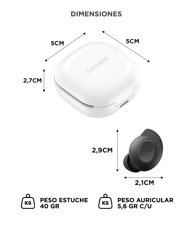 Peso: 5.6 g (cada auricular), 40 g (estuche)
