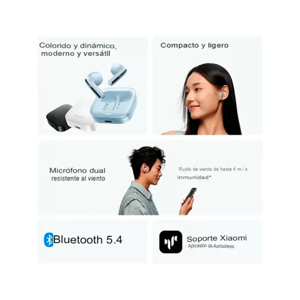 Adoptan una unidad dinámica ultragrande de 14,2 mm. El rendimiento de los graves se ha mejorado y puedes disfrutar de un impacto auditivo diferente. Certificación de hardware NetEase Cloud MusicTM. Las llamadas con micrófono dual resisten el ruido del viento resistencia al ruido del viento para llamadas de hasta 4m/s. Cuenta con 5 modos de sintonización incorporados, desde la app Xiaomi Headphones podes cambiar el modo de efecto de sonido. Por ejemplo: