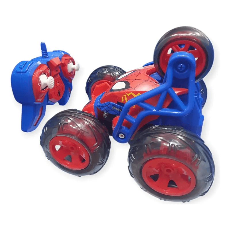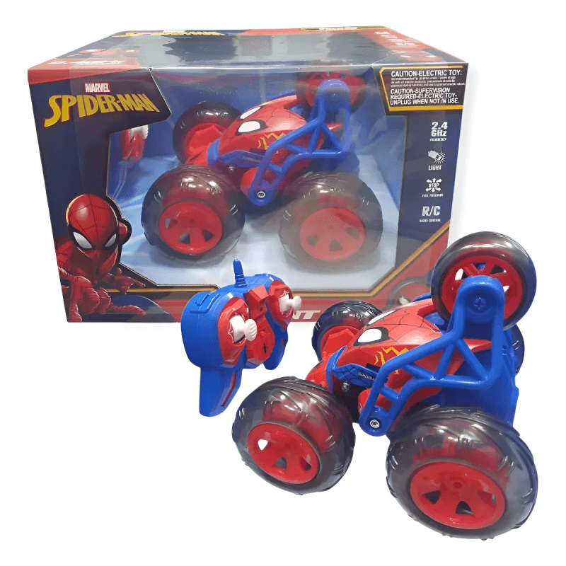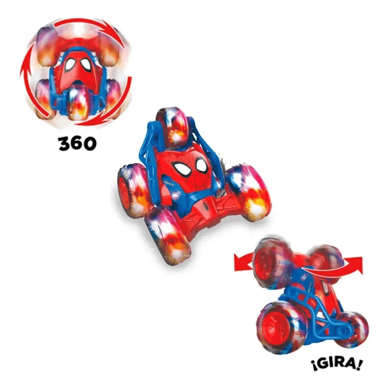 Dale vida a tus aventuras con el Auto a Radio Control Five Wheel Stunt de Spider-Man, un modelo diseñado para los amantes de la acción y la emoción. Este vehículo cuenta con una clasificación de stunt, lo que significa que puede realizar increíbles acrobacias y giros en cualquier superficie, brindando horas de diversión tanto a niños como a adultos.