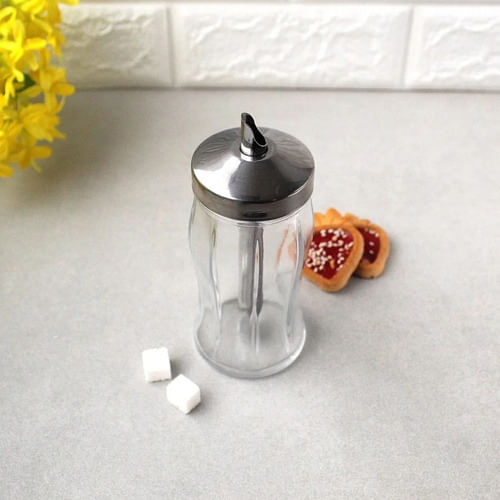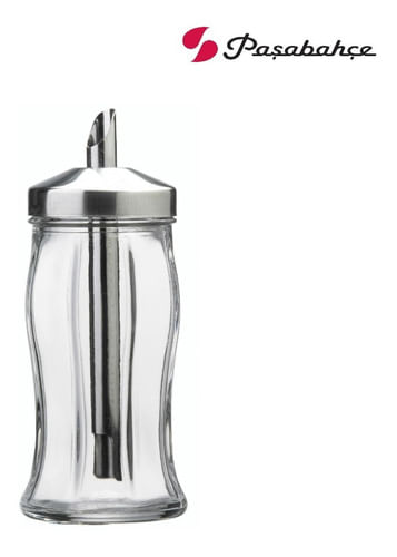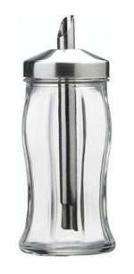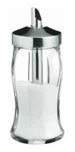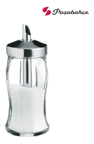 Azucarera de vidrio y metal