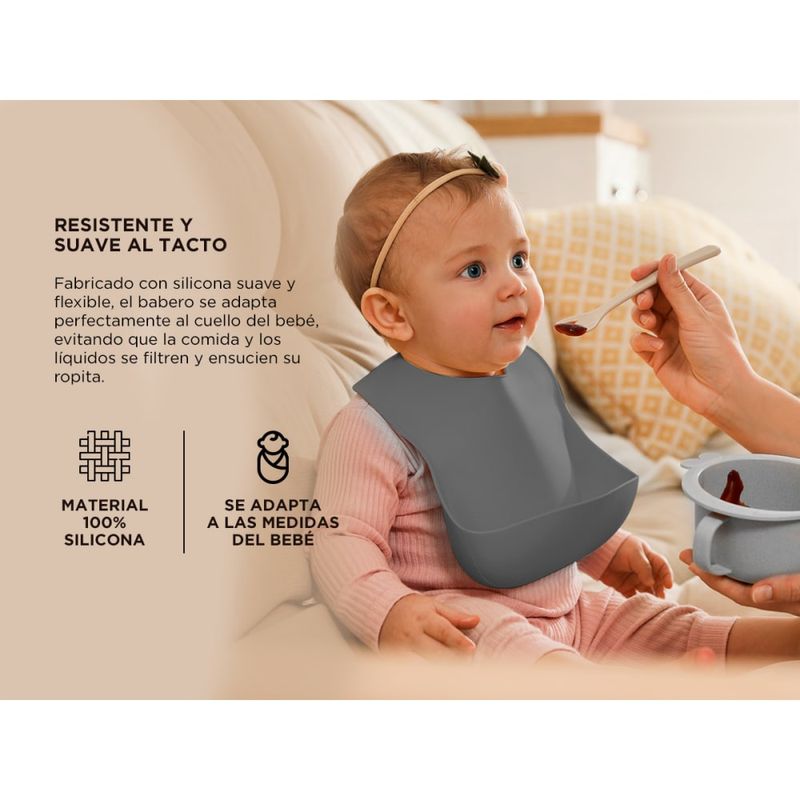 Introduce a tu bebé en una experiencia de alimentación libre de manchas y desorden con nuestro Babero de Silicona.