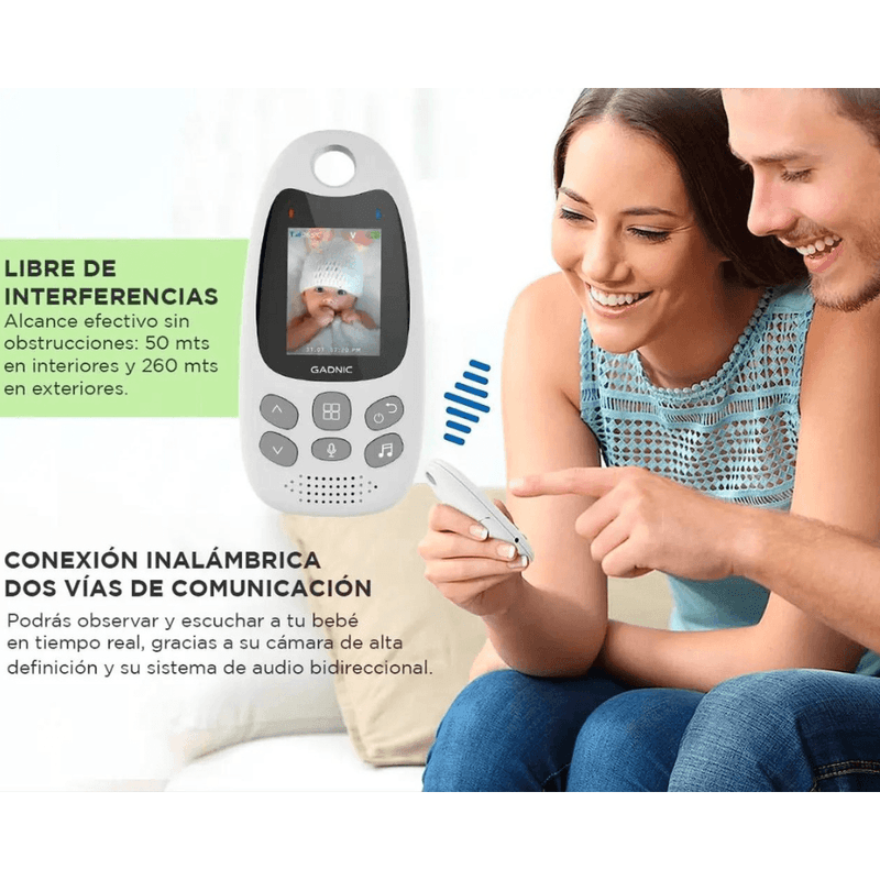 El baby call de Gadnic es la solución perfecta para los padres que buscan tranquilidad y seguridad para sus bebés mientras duermen o juegan en otra habitación. Con él vas a poder observar y escuchar a tu bebé en tiempo real, gracias a su cámara de alta definición y su sistema de audio bidireccional. Además, cuenta con una función de intercomunicador para que puedas hablarle a tu bebé o calmarlo desde cualquier lugar de la casa. Su diseño elegante y compacto se adapta a cualquier tipo de decoración, y su instalación es muy sencilla y rápida. Además, su batería de larga duración te asegura una conexión estable durante toda la noche.Descripción