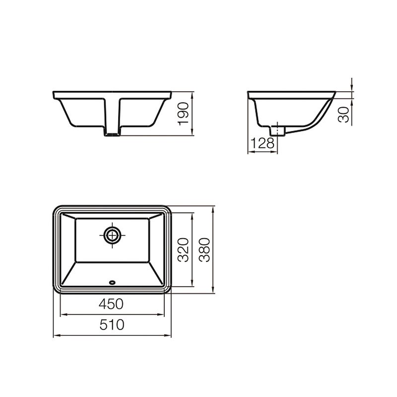 Bacha baño bajo mesada rectangular Ferrum Tori Symi L334B