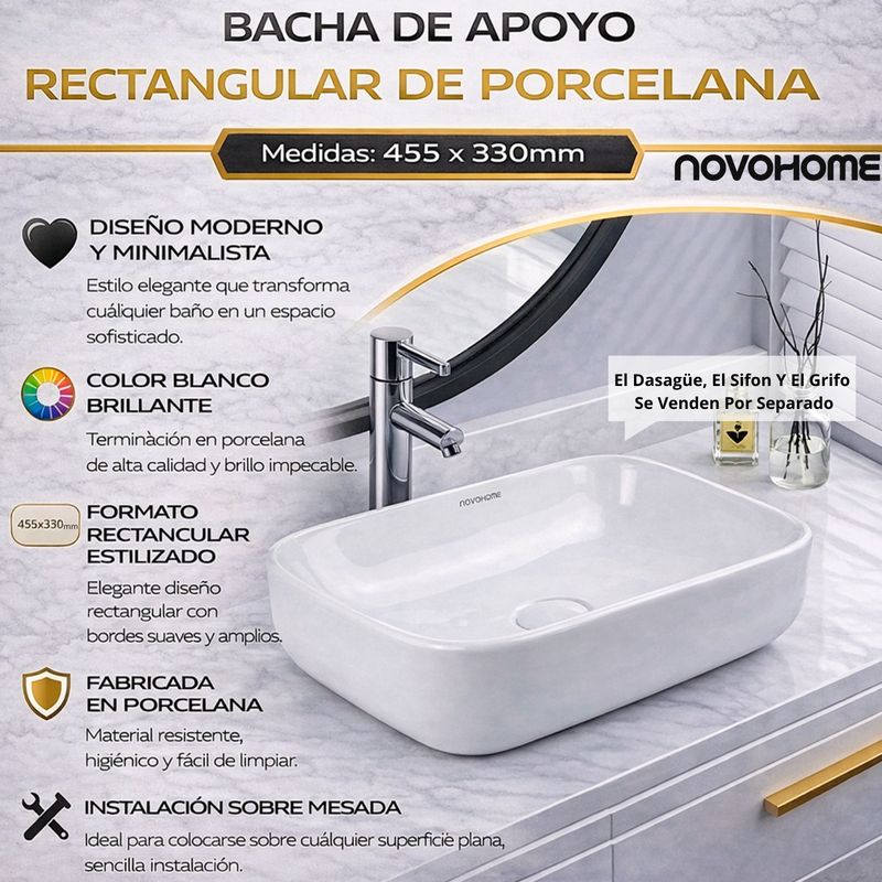 Sumá diseño y funcionalidad a tu baño con esta bacha de apoyar Novohome, ideal para espacios modernos y elegantes. Su formato compacto y líneas suaves aportan una estética minimalista, convirtiéndola en una excelente opción tanto para baños principales como para toilettes.