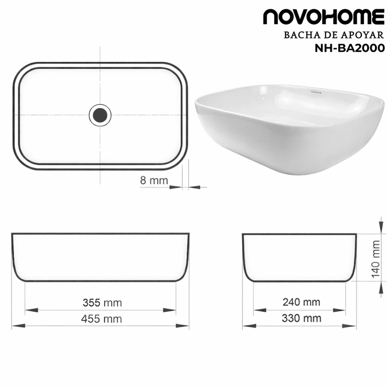NOVOHOME BACHA DE APOYO SLIM RECTANGULAR