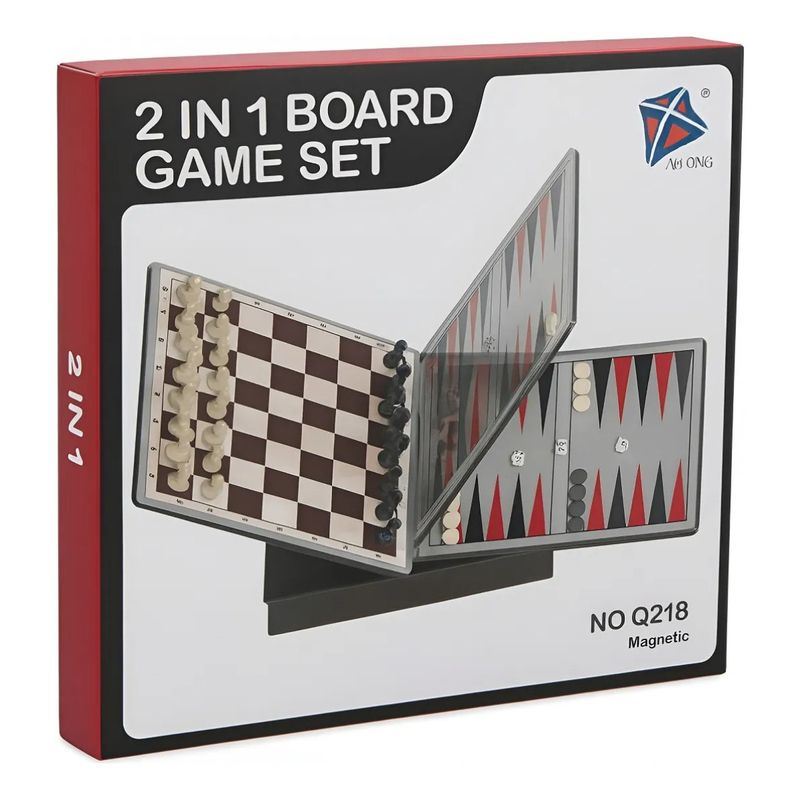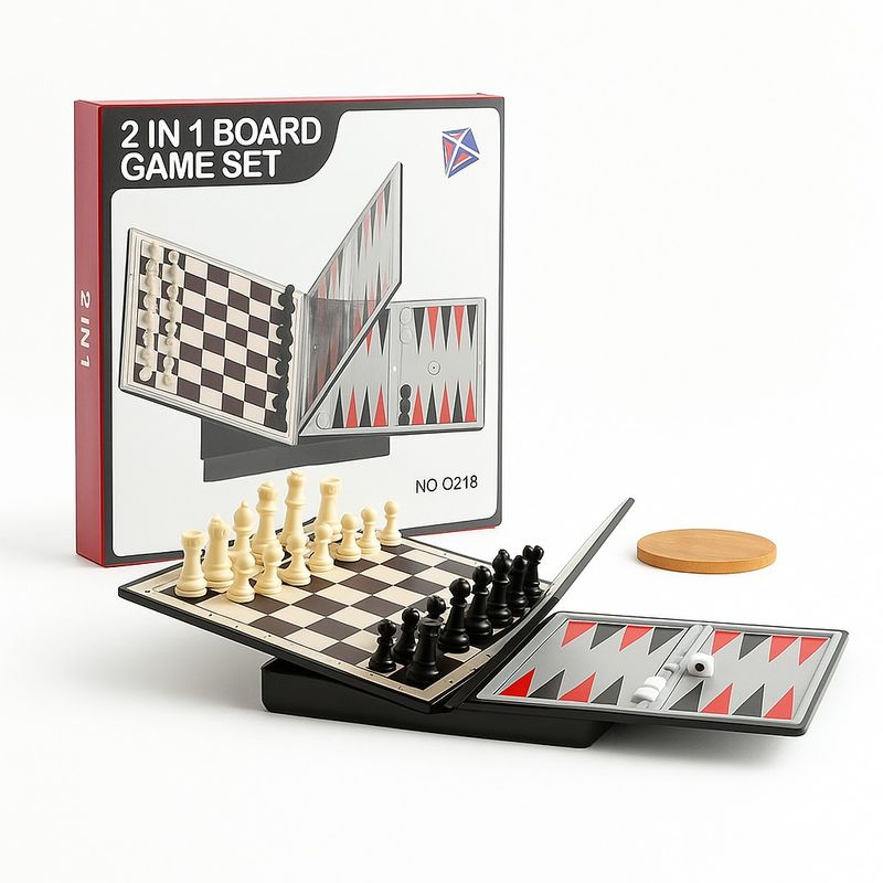 Disfrutá de dos clásicos en un solo set con este juego de mesa 2 en 1, que incluye ajedrez y backgammon en formato magnético y plegable. Ideal para llevar a cualquier lado y compartir momentos de diversión en familia o con amigos.