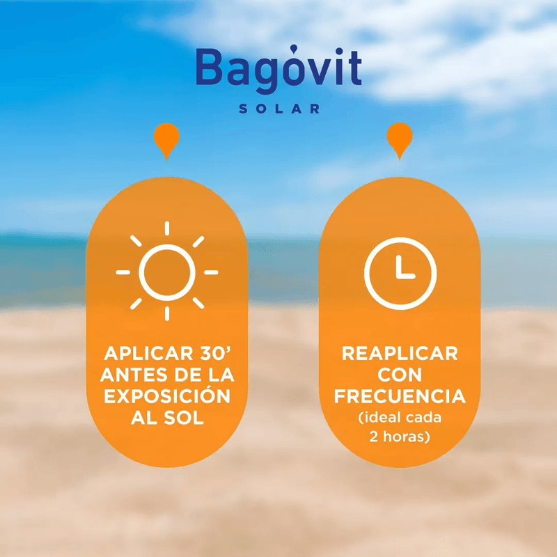 El Protector Solar Family Care Kids Bagóvit con Factor de Protección Solar 50 es una emulsión hidratante corporal y facial, pensada para niños a partir de los 12 meses de edad, con una fórmula libre de perfumes y colorantes.