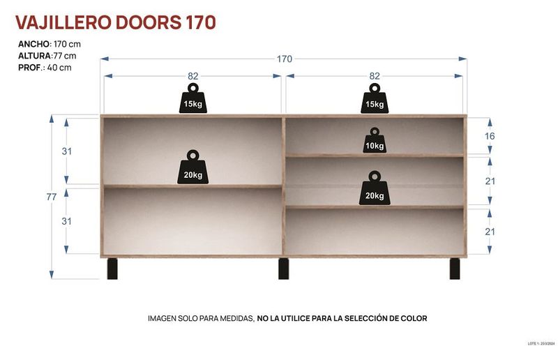- Estantes regulables: 2 (carga maxima de 20 kg cada uno)