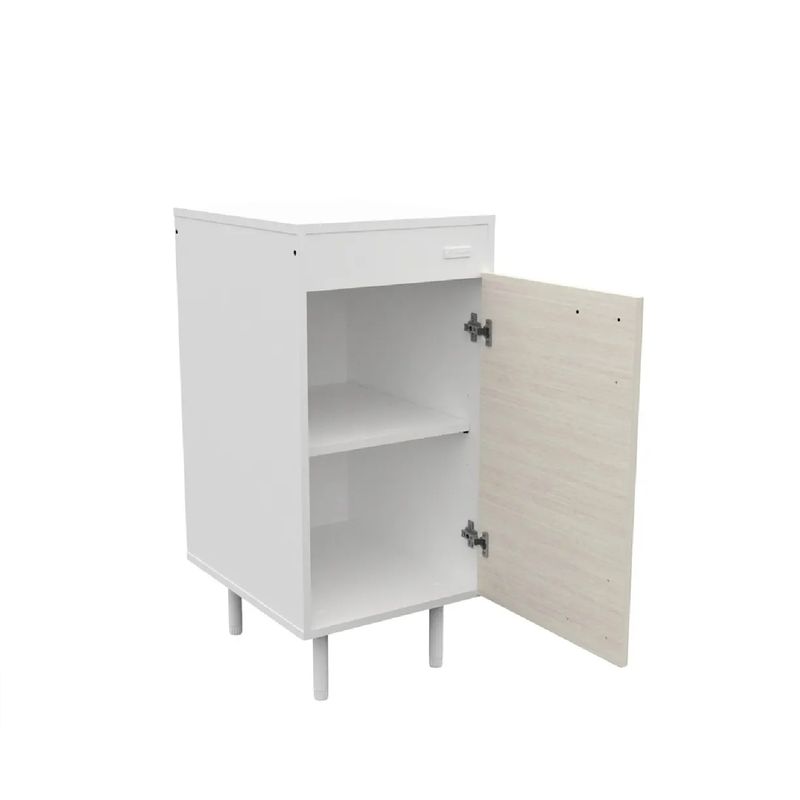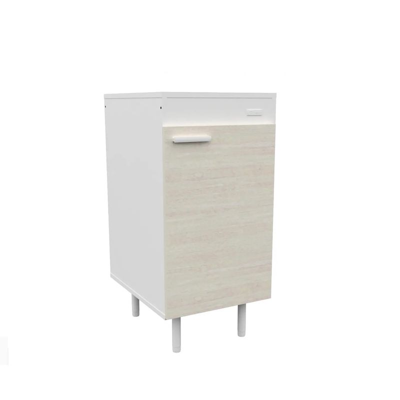 Este modelo incluye una puerta de MDP y tiradores de plástico diseñados para un uso cómodo y seguro. Además, incorpora estantes internos para que puedas distribuir tus objetos con orden, y viene con mesada incluida, facilitando la instalación y aportando un acabado impecable a tu cocina.
