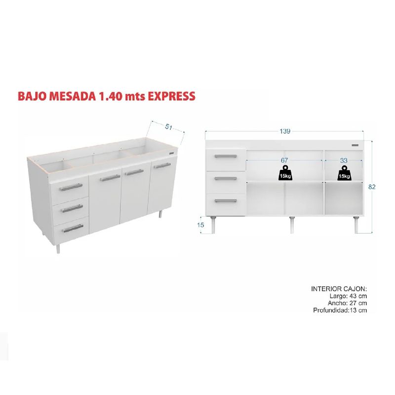 Bajo Mesada Mod. Express Mosconi 1.40Mts – Diseño y funcionalidad para tu cocina